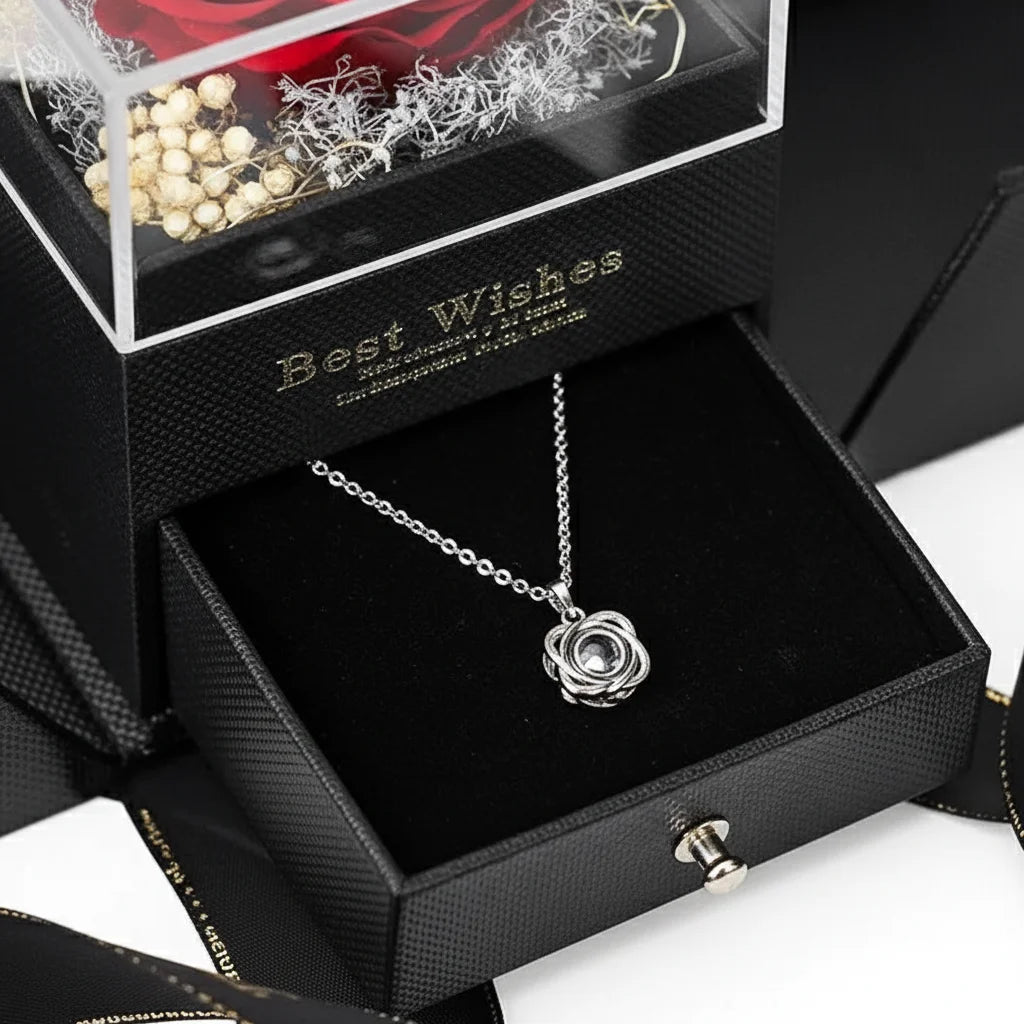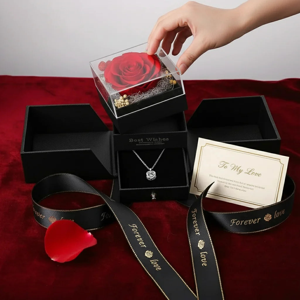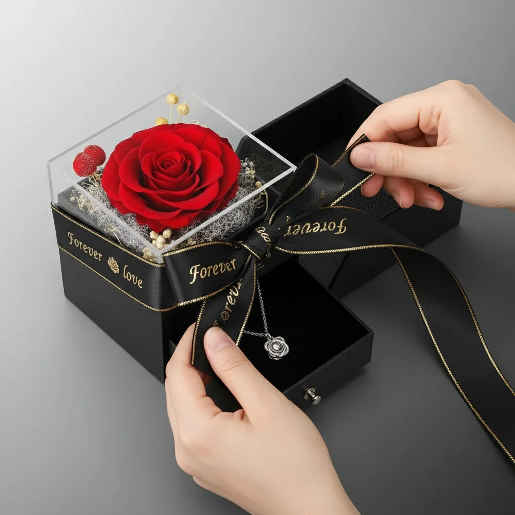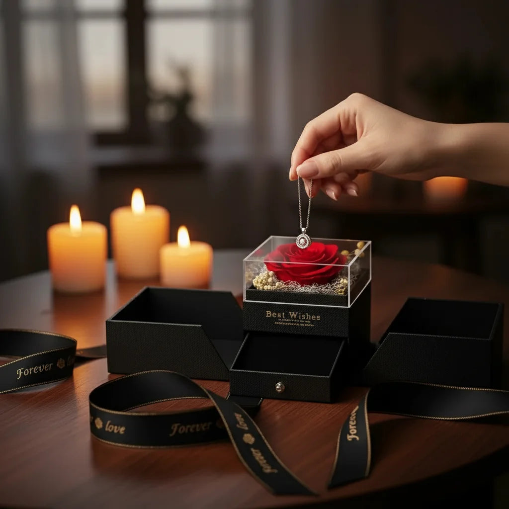 This isn't just a gift; it's a statement. The combination of a forever rose and a hidden necklace ensures your thoughtful gesture will stand out and be treasured as a unique memento of your love.